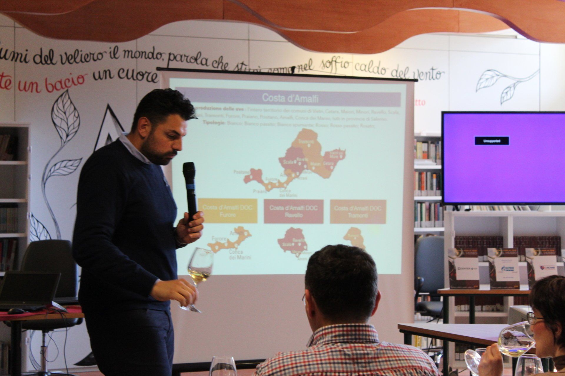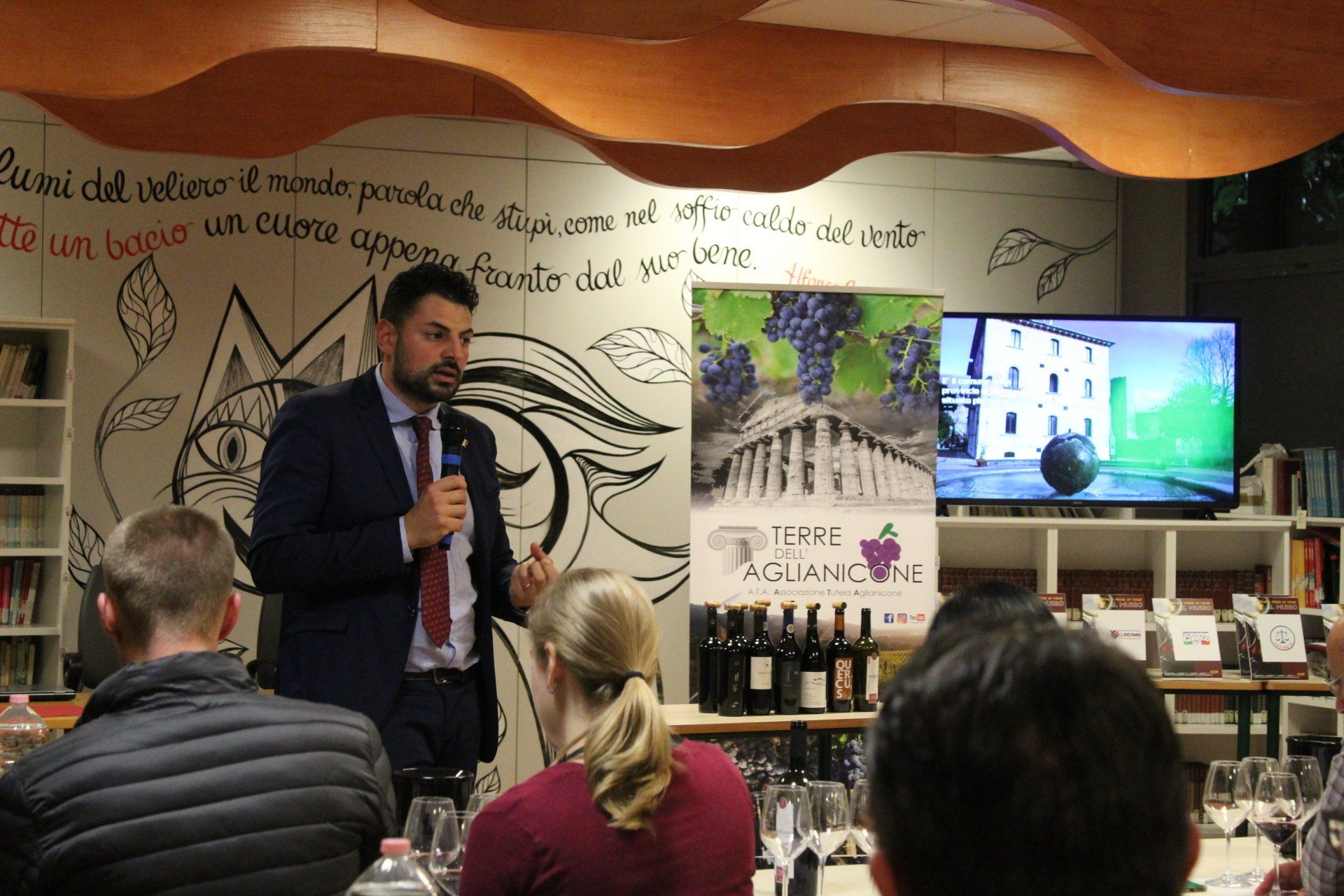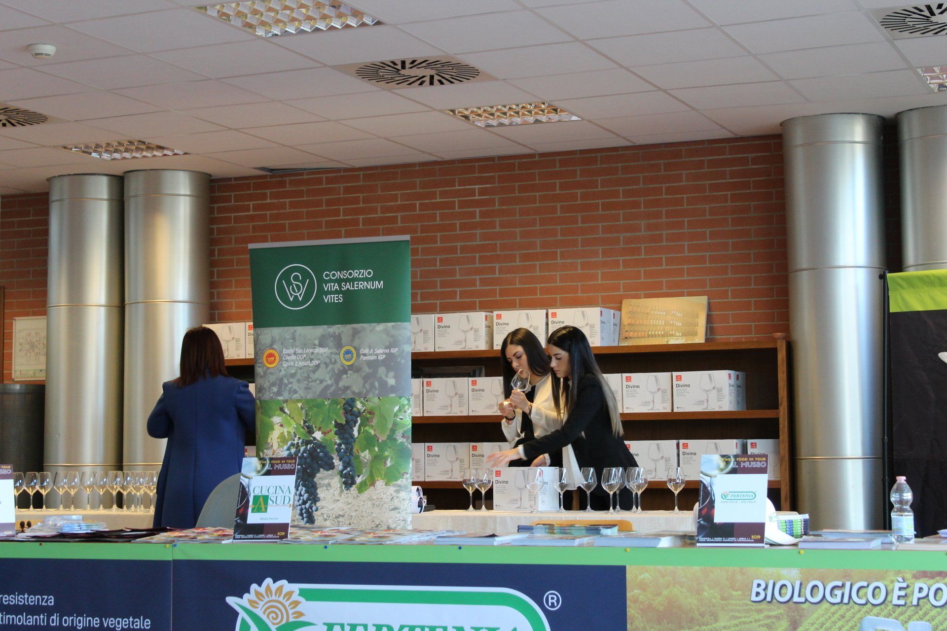 Shooting fotografico dell’evento wine-food in tour 2019 avvenuto presso il museo archeologico di Pontecagnano. Foto backstage dei vari produttori vinicoli del territorio salernitano. Dello staff e partner ufficiali da Fertenia al Consorzio Vinum Salernum Vites. Foto della tecnica della degustazione di vini bianchi e rossi avvenute nella biblioteca. Coinvolgimento di molte persone nel degustare vini dalle tinte rosse, bianche e rosate. Dalle esibizioni di Tango che hanno accompagnato i visitatori con le giuste vibrazioni.